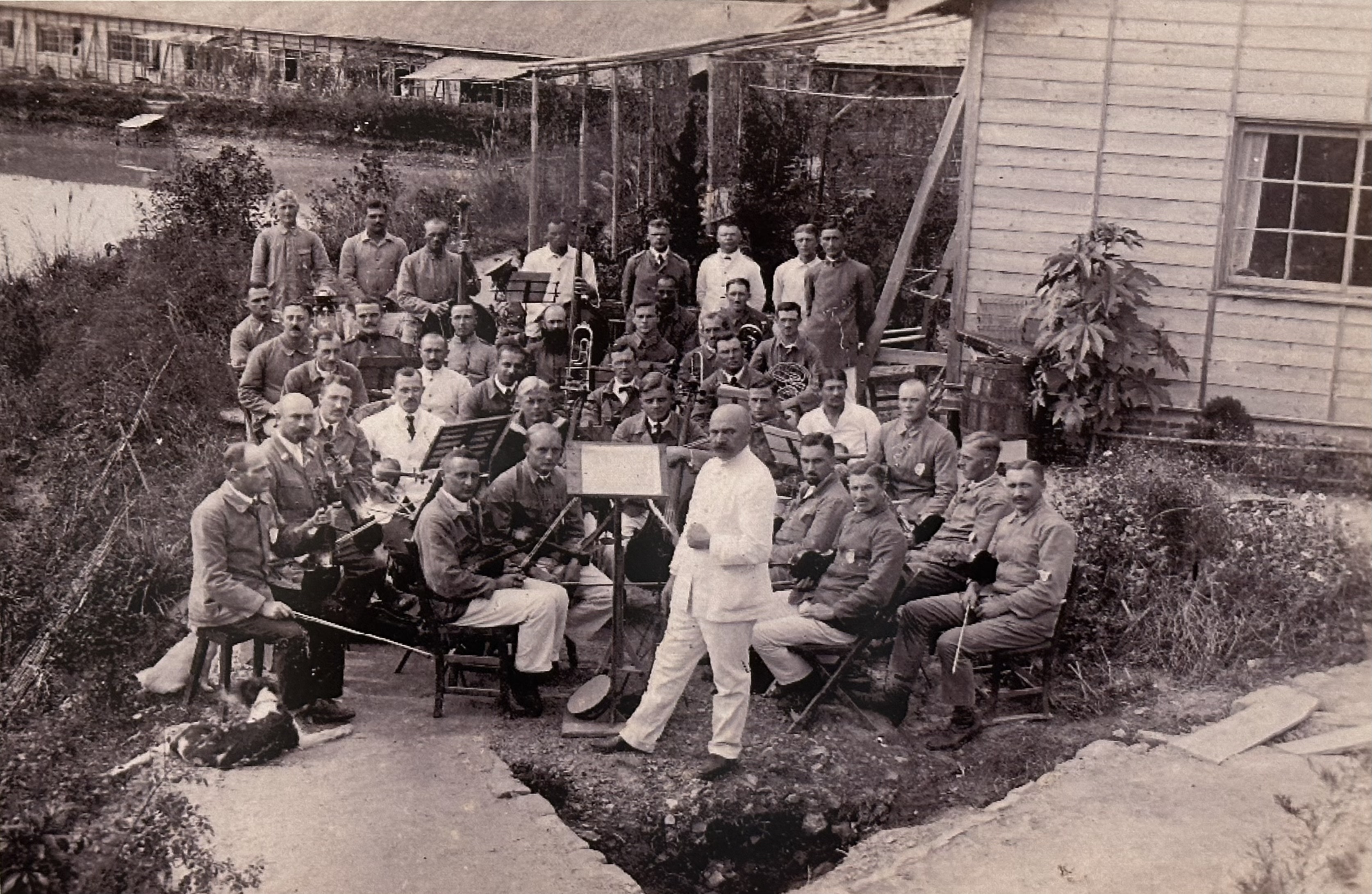 Für besondere Projekte schloss man sich zusammen, wie zum Beispiel für eine Aufführung von Beethovens Neunter Sinfonie mit großem Orchester und Chor. Erstmals vor japanischem Publikum spielten sie am 1. Juni 1918 und ließen die „Ode an die Freude“ erklingen, mit einem 45-köpfigen Orchester, vier Solisten und einem 80 Mann starken Chor. Die Kunde von diesem Konzert drang bis an den Kaiserhof und weckte die Neugier eines Prinzen, der sich für westliche klassische Musik interessierte. Tatsächlich soll er am 19.8.1918 ins Lager gekommen sein, um sich das Konzert anzuhören.